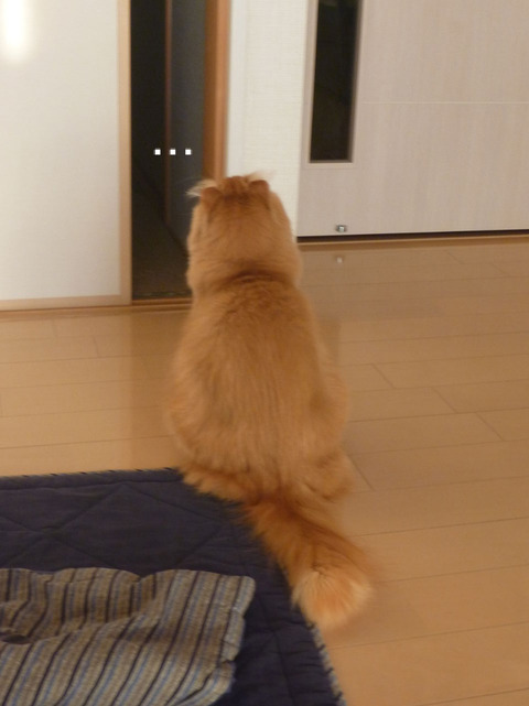 サマリー:玄関を入ると、階段上で実家猫 |