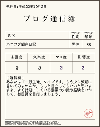 サマリー:下がその結果 通信簿 やはりと言っていいのか? マメ度 2 影響度 2という悲しい |