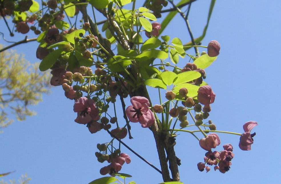 サマリー:アケビの花 アケビのオス花とメス花。森の遊園地には、アケビとミツバアケビが |