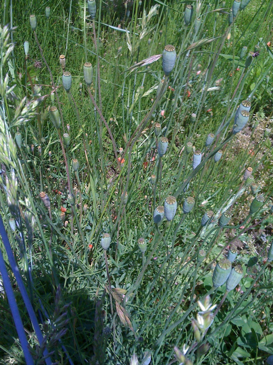 サマリー:の咲いていたミナガヒナゲシは花をおとして、長い実をもたげている。 |