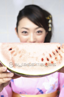 サマリー:素材 人物すいかを食べる女性 |