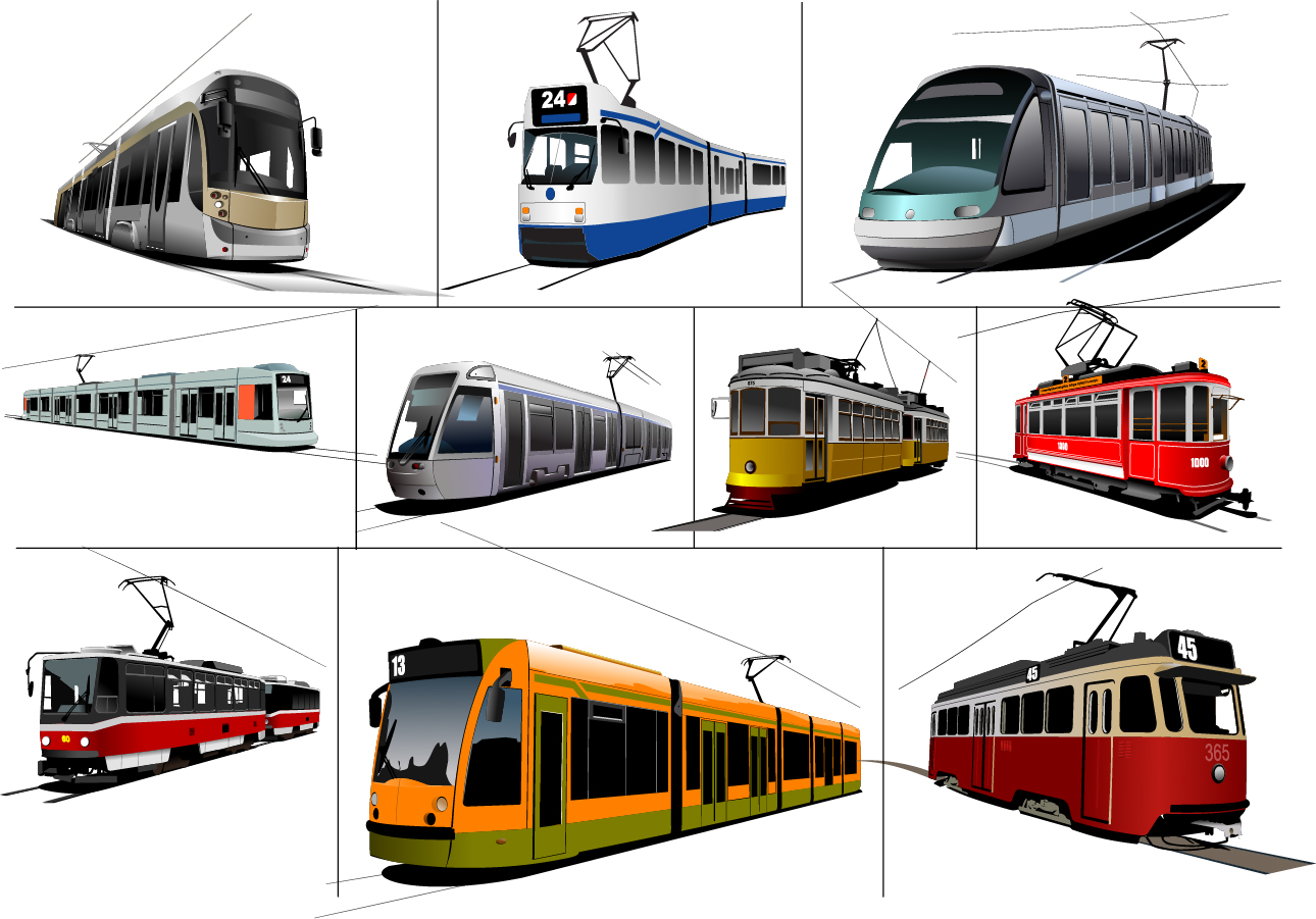 サマリー:路面電車のイラスト Trolley train vector material |