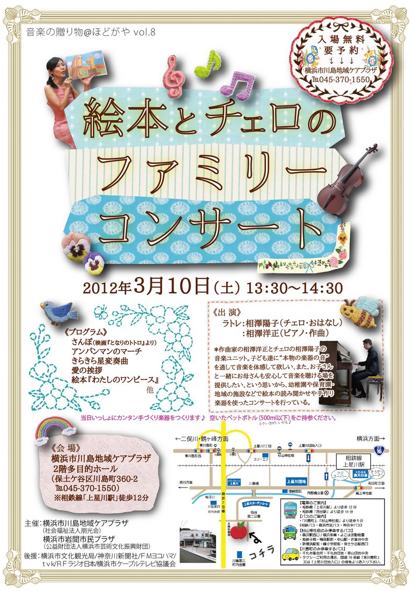 入場無料】絵本とチェロのファミリーコンサート : 横浜市岩間... |
