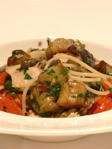 サマリー:なすとトマトの素材の味を楽しみ |