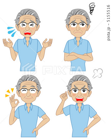 シニア男性表情セット(怒り/不満/悲しみ/OK)のイラスト素... |