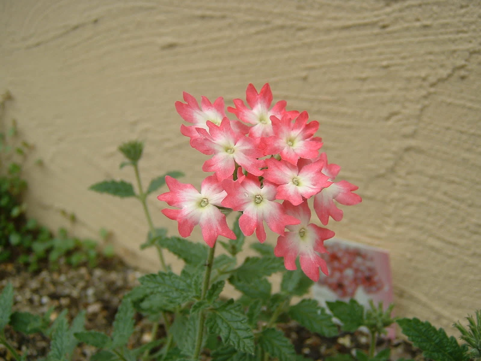 サマリー:ハウスの脇で、三尺バーベナが |