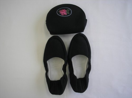 送料返品無料】お受験携帯スリッパ 黒無地・薔薇刺繍入りポーチ... |
